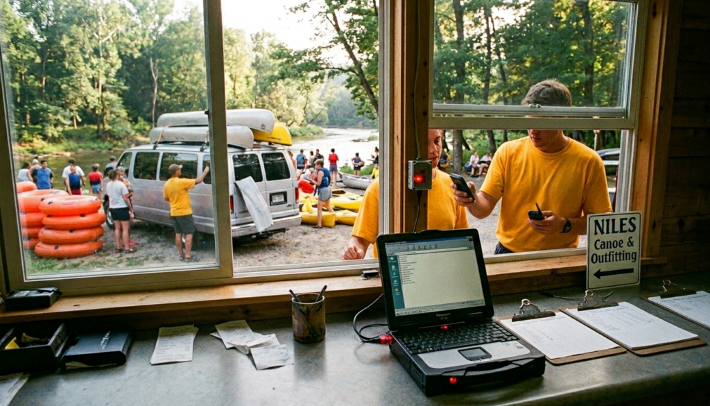 Managing 200 guests across 28 miles of wild, protected river with six staff members and two 15-passenger vans was a massive data problem. In the heyday of the Nokia “brick” phone, there was no real-time coordination. You had voice calls, but no way to track the complex, moving parts of a multi-group river tour.