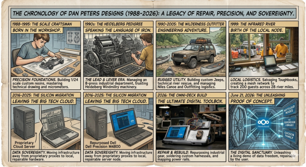 3. Infrastructure for the Chosen Family Just as the Outfitter era was about providing gear for those who needed it, the current Home Node project is about providing a digital sanctuary. By building an independent, offline-capable environment, I’m creating a “Digital Jeep”—a rugged, turnkey system for my chosen family that doesn’t rely on the permission or prying eyes of Big Tech.