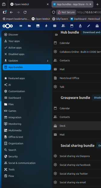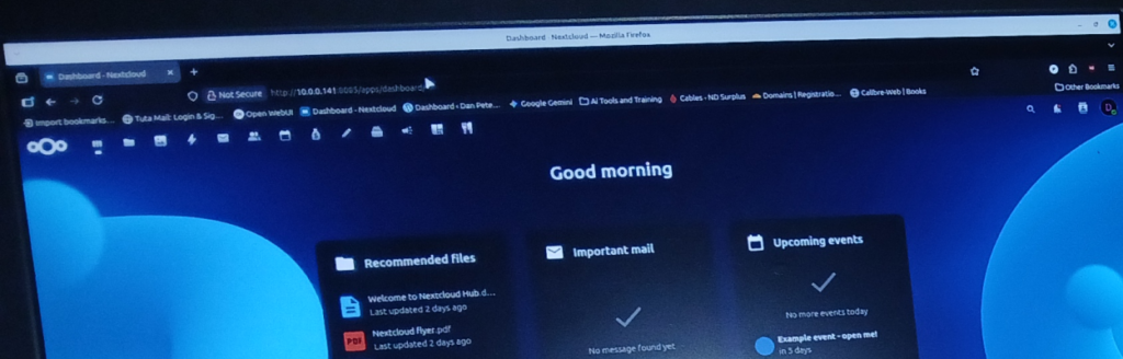 - Nextcloud: The “Headquarters.” Replaces big-tech cloud storage for file sync and collaboration, hosted entirely on your local node.